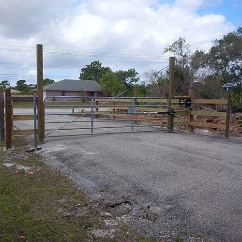 GHOST CONTROLS® Dual Automatic Gate Opener Kit is the perfect solution for any dual agricultural style or tubular gate used to access your property. These innovative gate opener systems were designed to be the superior solution for home and property owners wishing to automate their tubular or agricultural style gates while being the easiest system to install. Capability for power from an Automotive Style battery (not included) or Optional ABBT Battery Box Kit (not included) that allows optimal performance in Solar Powered Installations. It provides easy access and lockable system control box. This opener has the ability to recharge the battery from an AC power source within 1000 feet of the control box to plug with the included resettable transformer or from optional AXDP Solar Panel if AC power is unavailable. Capacities and specifications are specifically tailored to easily open and close almost all commercially available tubular gates up to and including those 20 feet in length and are also able to be installed on most decorative entry gates. A RF Receiver is integrated into the system control board. Gate attachment hardware is optimized to aid in insulation on tubular gates. Does not include battery, battery box and low voltage wire.