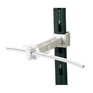 Gallagher Pro T-Post 5 in. Offset Insulator – 20 Pack white. Extends wire from post to keep animals away from fence. Pin locks allow for easy fence construction and wire removal. Wide jaw to accommodate EquiFence and trade; and braid products. Holds tape tightly to prevent movement and to maximize tape life.